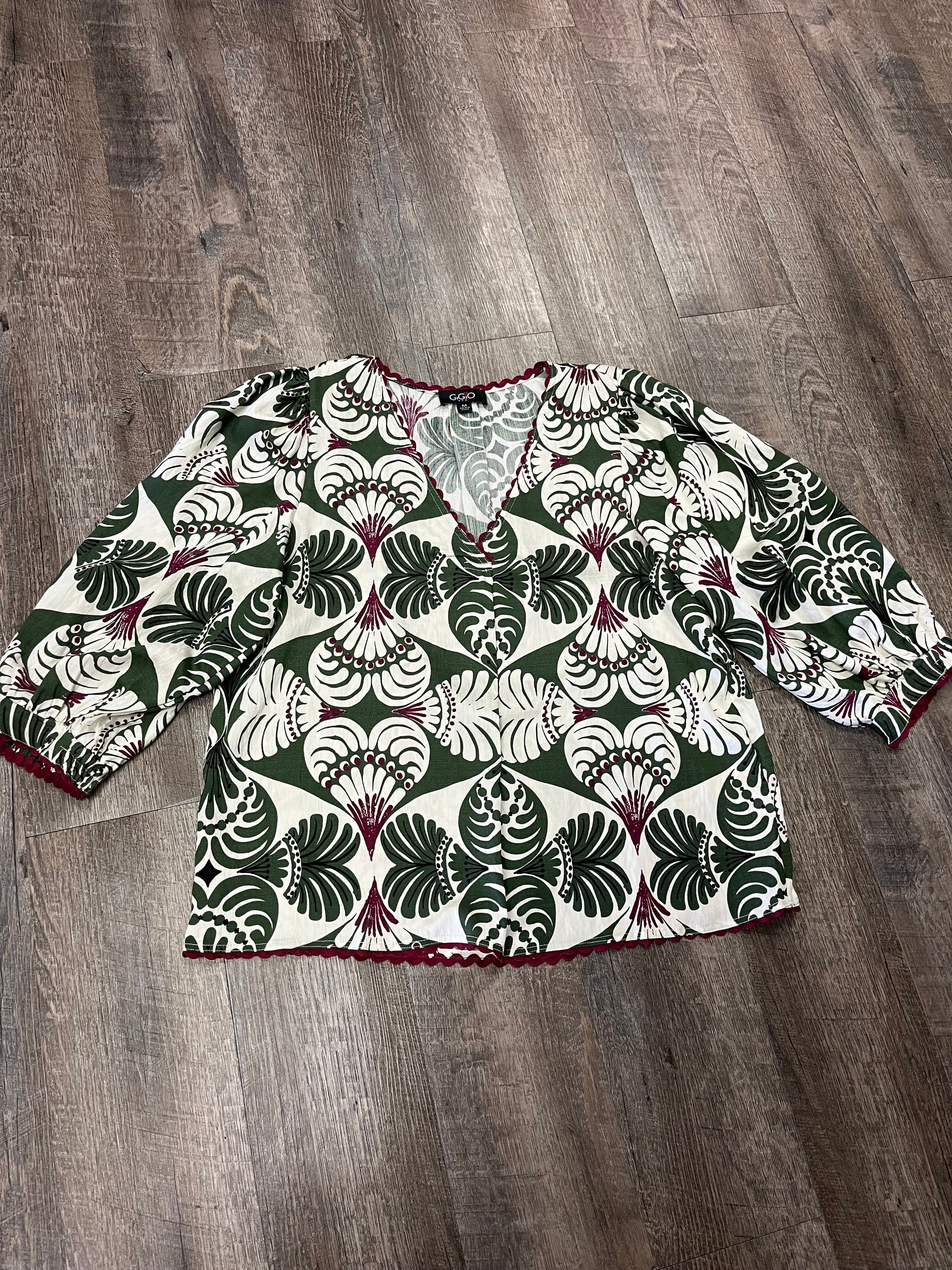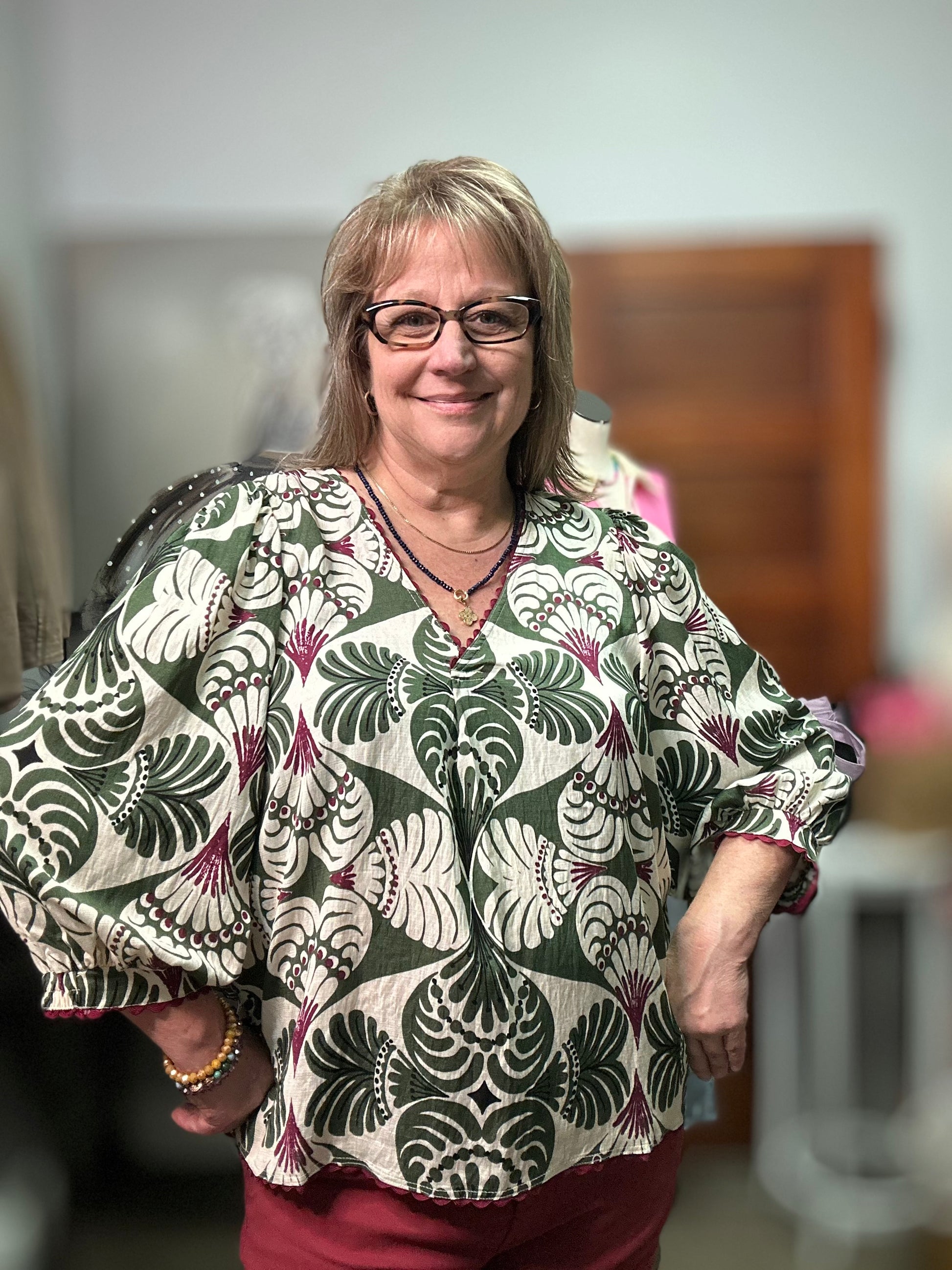 Elevate your everyday look with the Bordeaux Blooms Top. A soft cream background is graced with an olive-inspired design, while rich burgundy trim adds a touch of vineyard elegance. Effortlessly versatile, this top pairs beautifully with denim for casual outings or layers seamlessly under a jacket for a more polished finish.