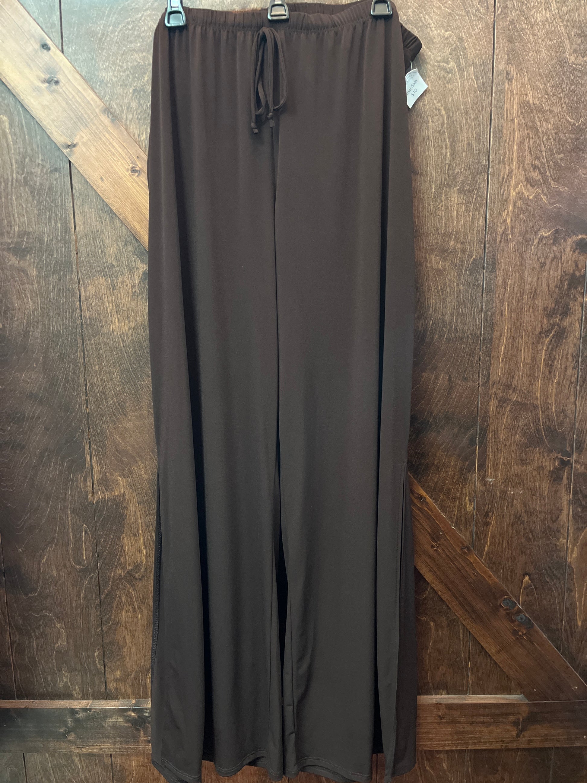 Looking to dress up for an event without wearing a dress? We have the perfect pant for you! Flowy with side slits and a silky finish.