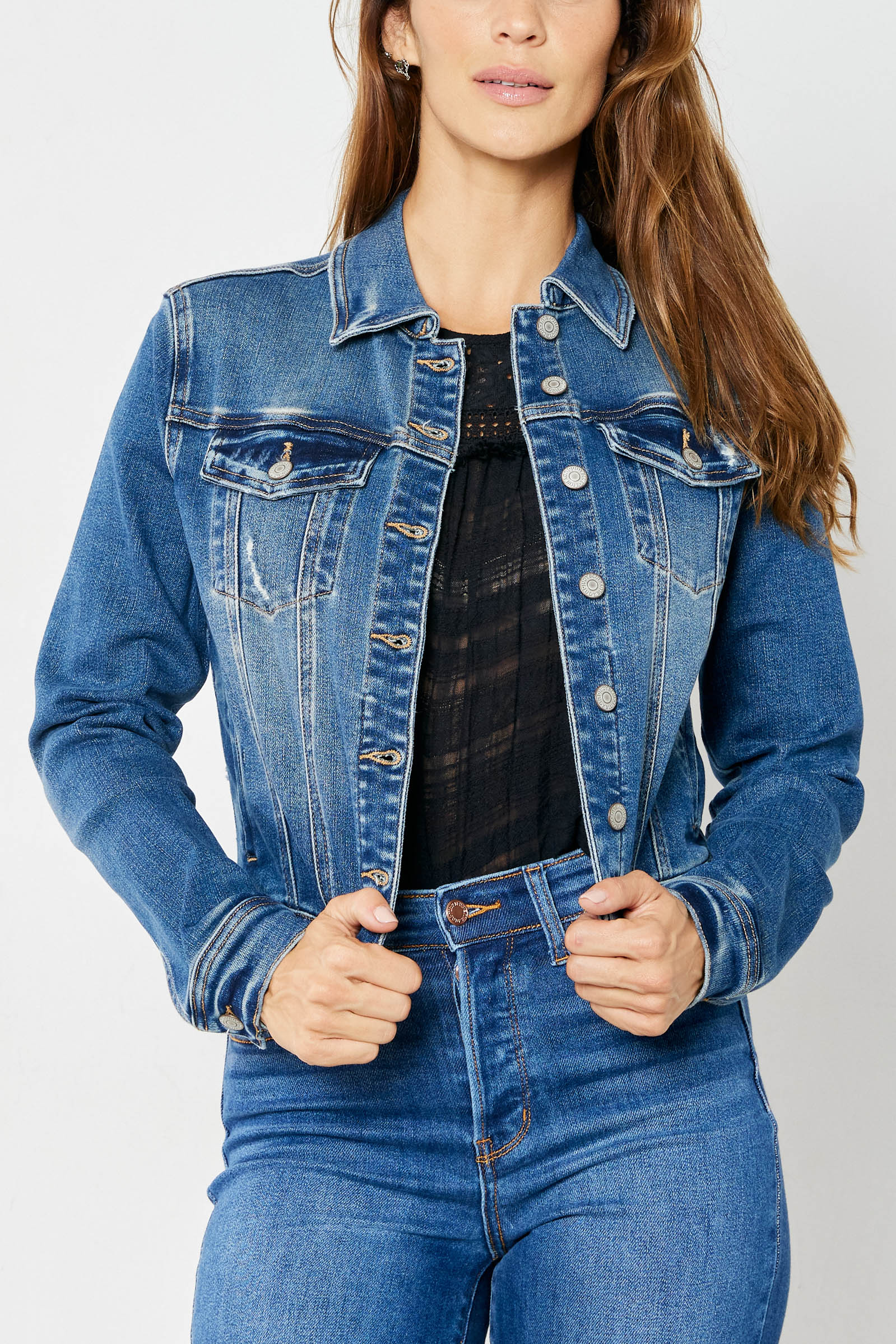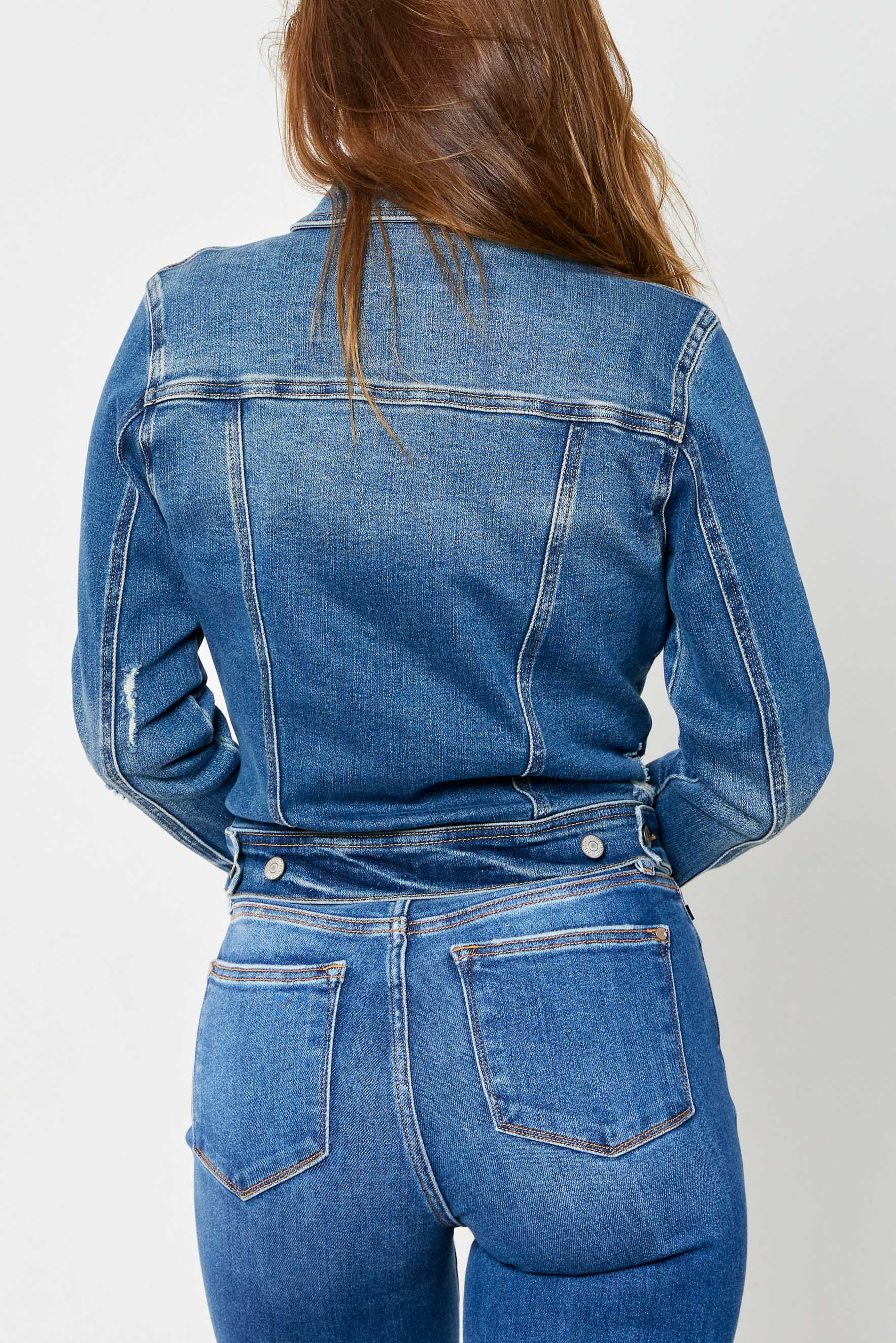 A timeless classic with a modern edge—this waist-length denim jacket is the perfect layering piece for year-round style. Featuring a flattering cropped fit that hits right at the waist, it pairs effortlessly with dresses, skirts, or your favorite jeans. The versatile wash and casual-cool vibe make it a must-have staple for any wardrobe.