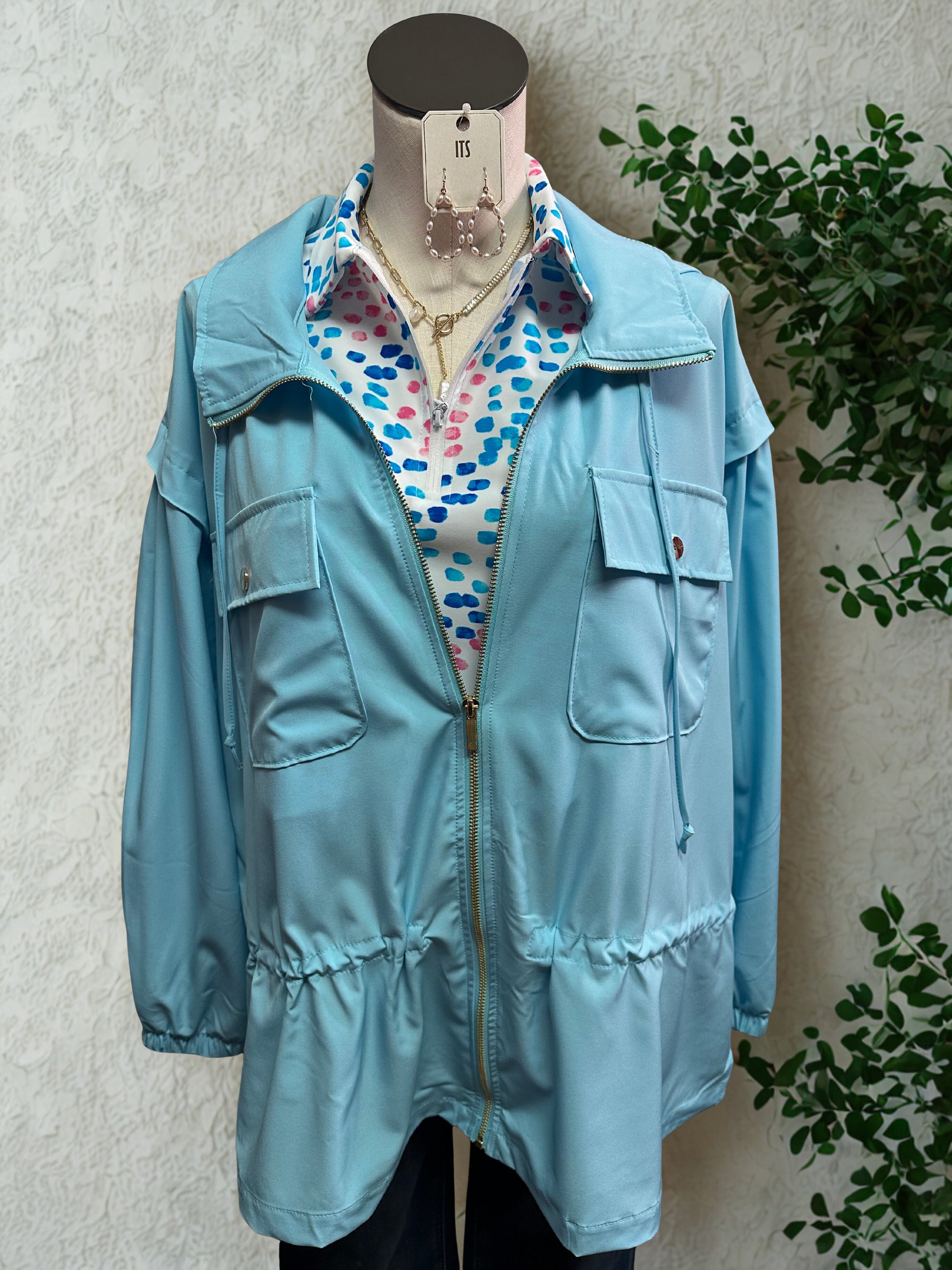 Featuring a full front zipper closure, collared neckline, and side slits for ease of movement, it blends classic tailoring with modern comfort. The lightweight cotton fabric keeps you cool and comfortable, making it perfect for transitioning between seasons.