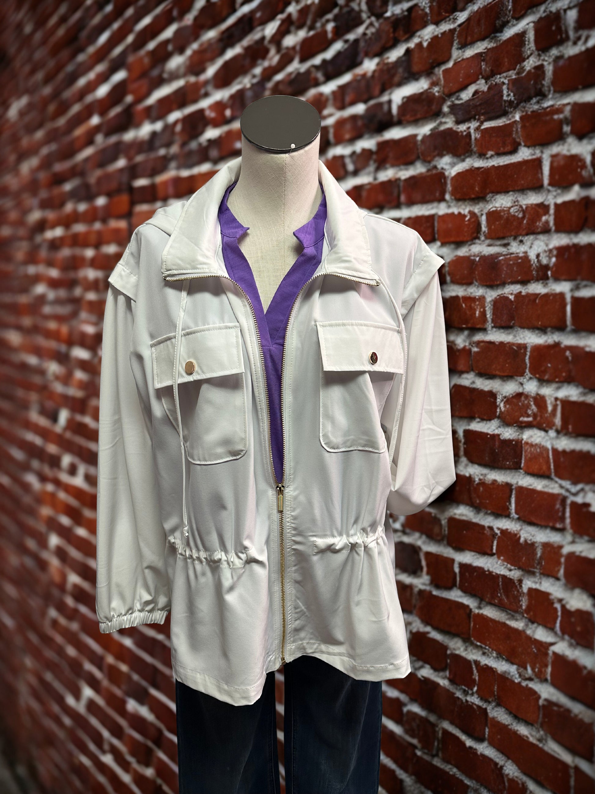 Featuring a full front zipper closure, collared neckline, and side slits for ease of movement, it blends classic tailoring with modern comfort. The lightweight cotton fabric keeps you cool and comfortable, making it perfect for transitioning between seasons.