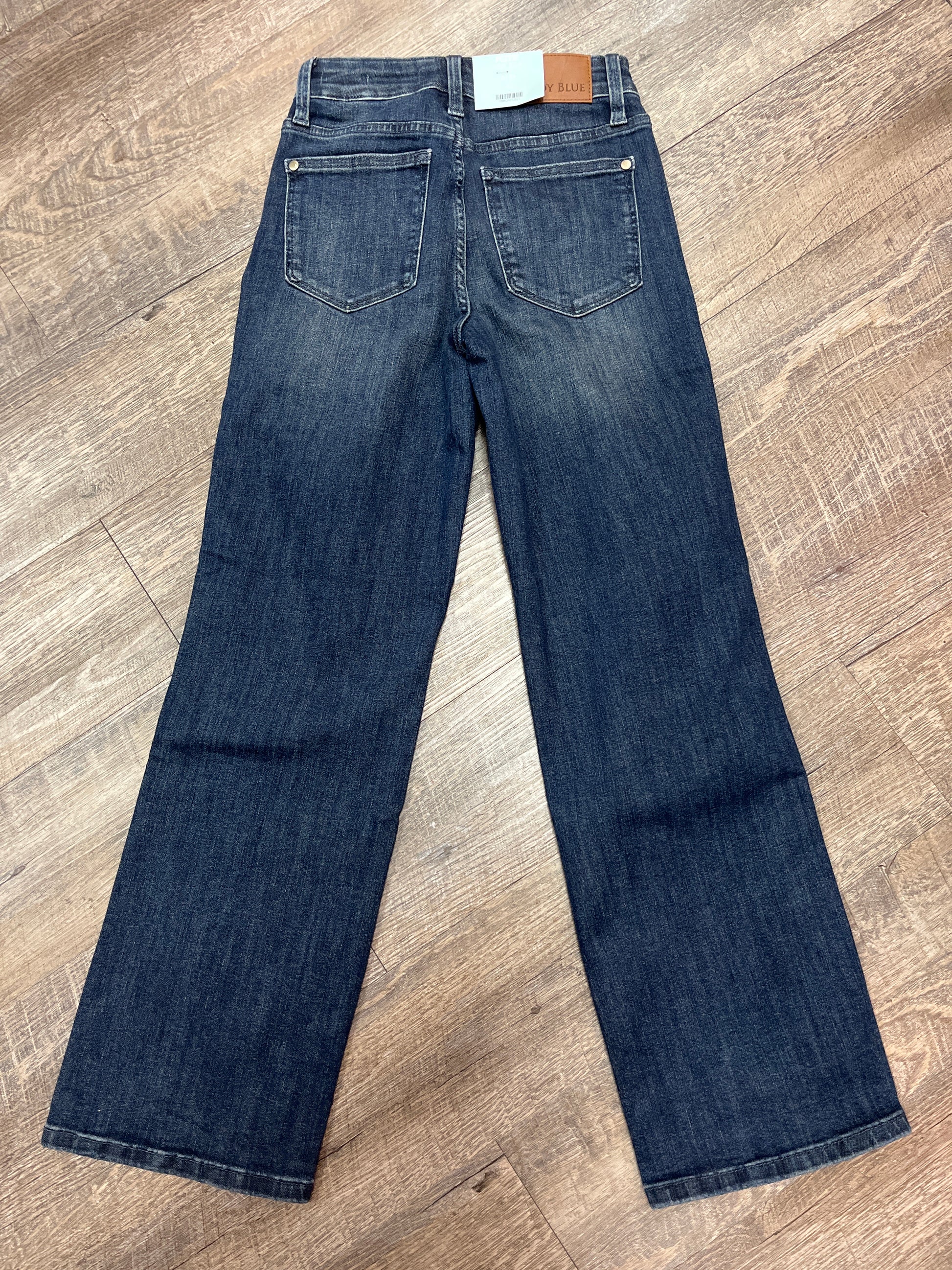 Petite straight-leg Judy Blue jeans crafted with a soft, stretchy blend (91% cotton, 7% polyester, 2% spandex) for an ultra-comfortable fit.”