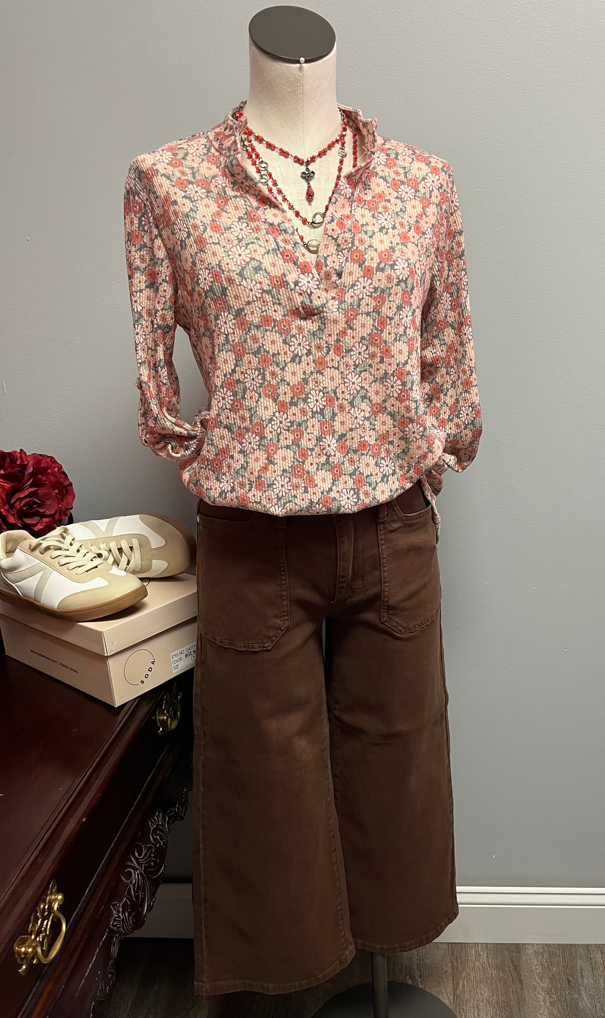 A soft 'henley' fabric top with all the comfort and stretch with a mandrain collar and tab 3/4 sleeves. Blends with any color. Perfect for that casual staple in any wardrobe for the cooler seasoned weather.