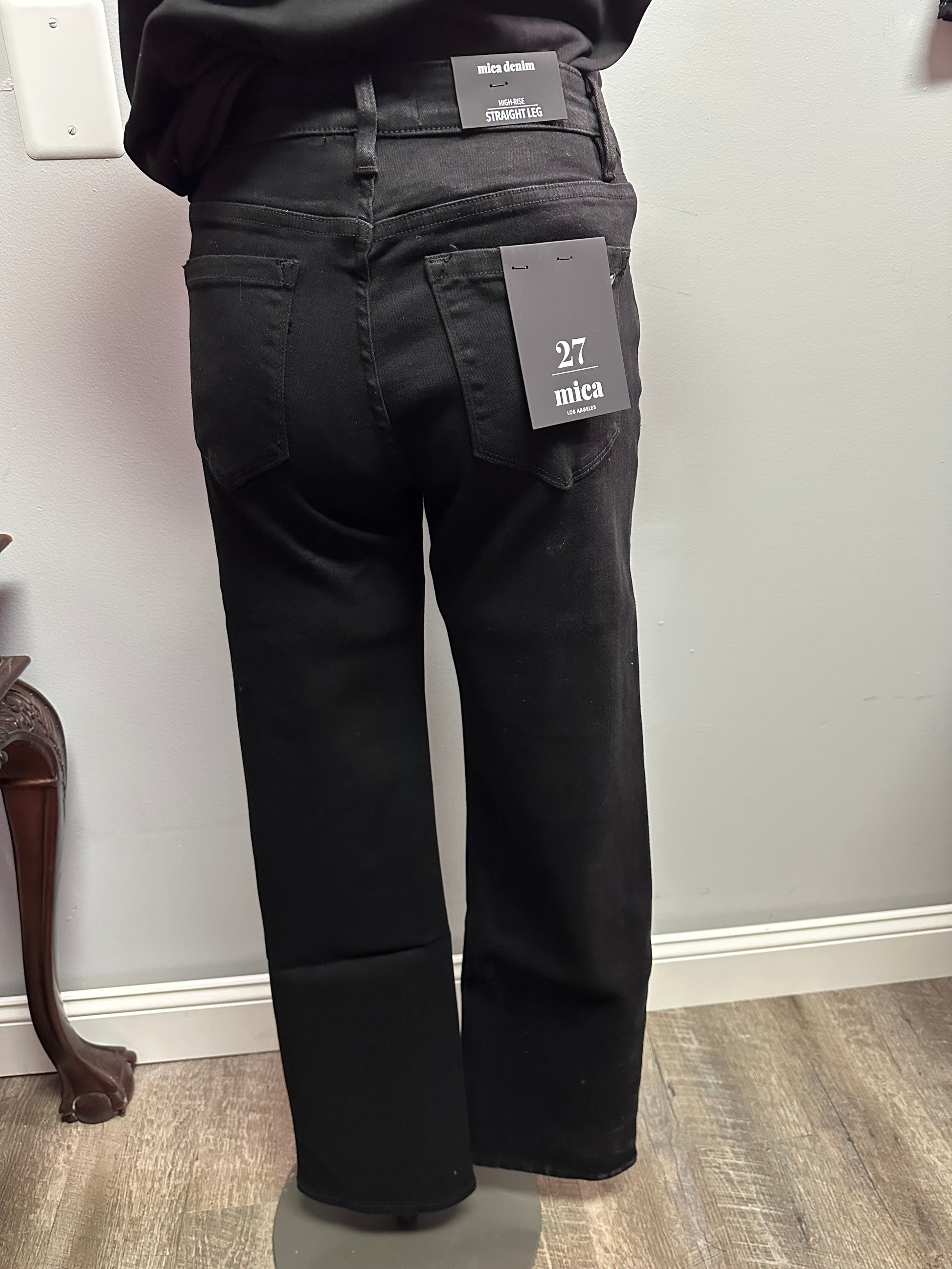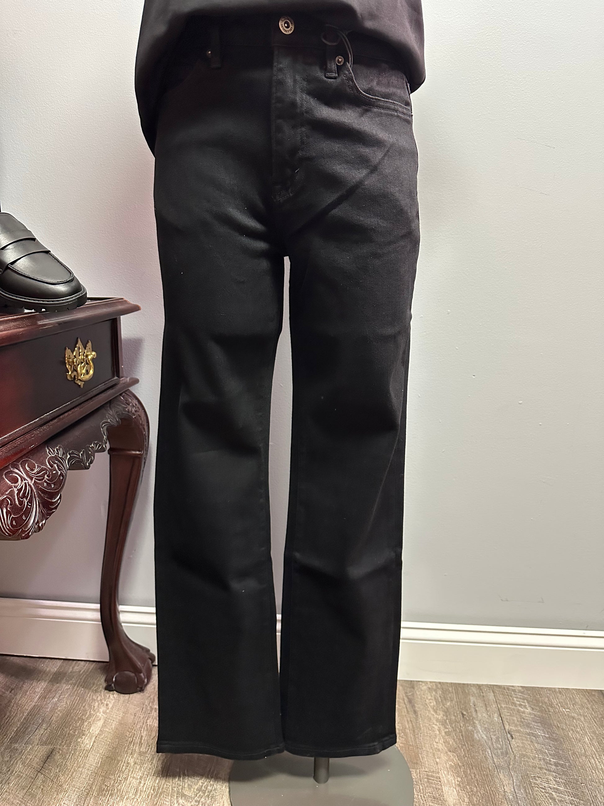 A classic black denim in a straight leg with a high waist. 31" inseam and perfect to dress up or down. Don't forget the ample stretch. A must have staple in your closest.