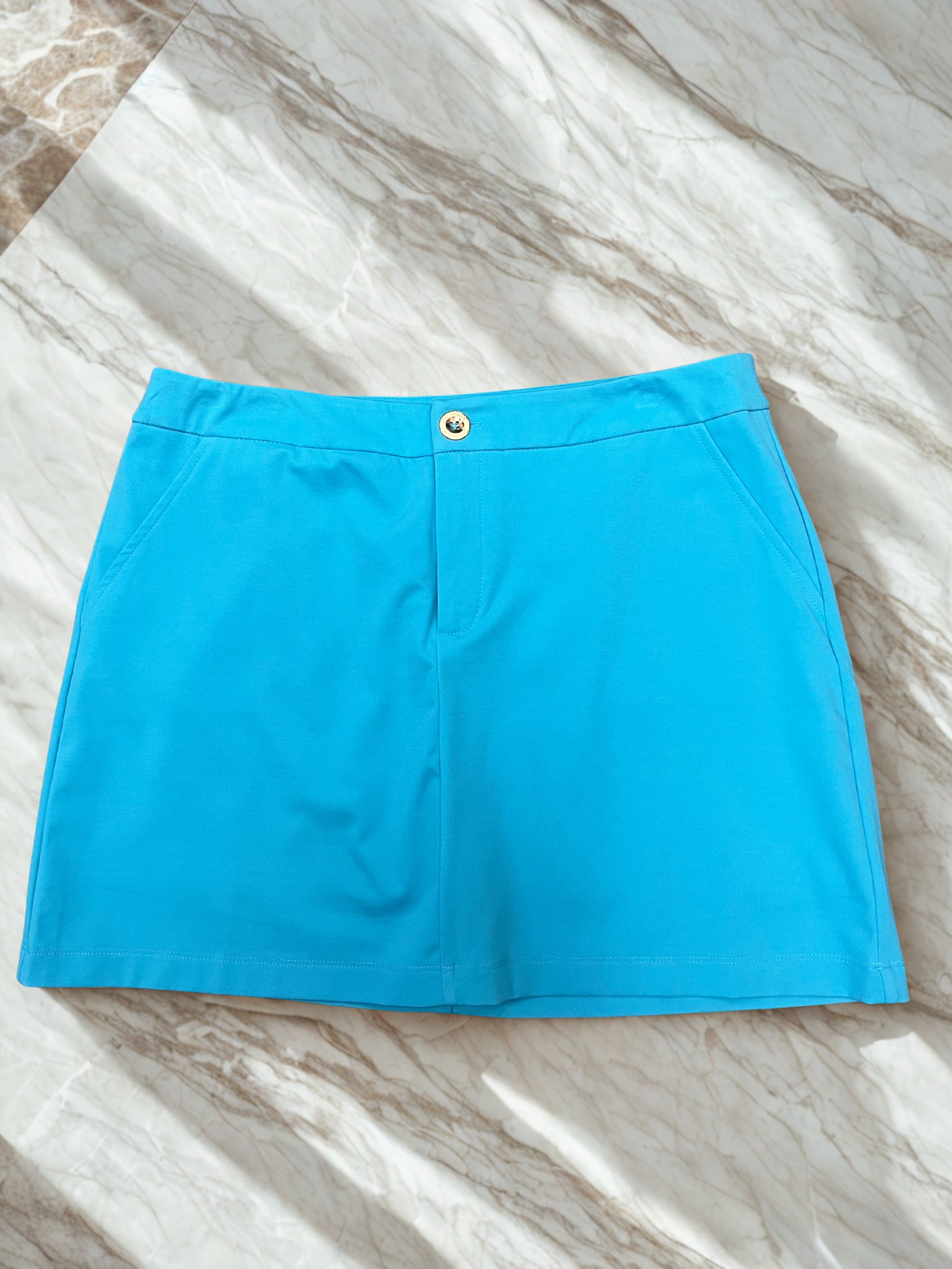 We love a teetime skirt like this! Inspired by sun protective material, this material will make you cool and fresh throughout the day! We love the details on this skort and we love how cute this skirt is whether you're on the court, the course, or out running errands!